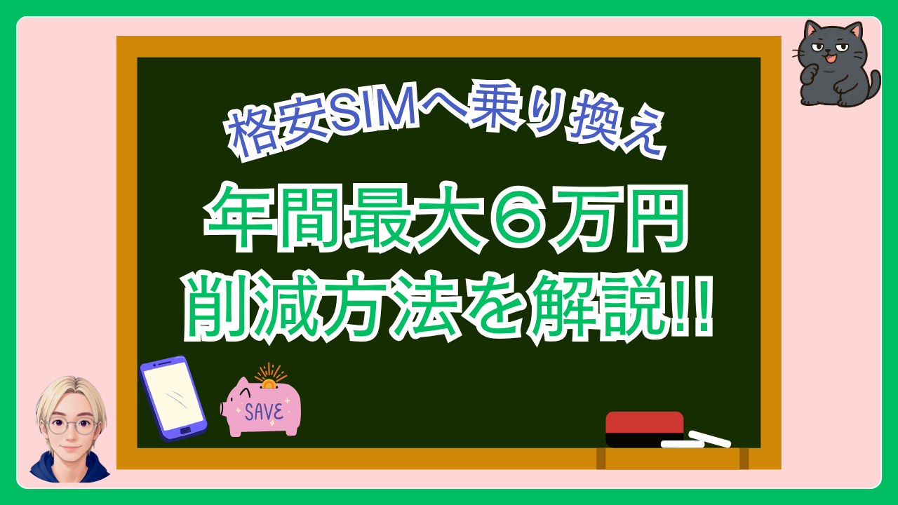 格安SIMへの乗り換えは、一度の手続きで毎月3,000〜5,000円・年間最大6万円の節約が実現できる、最もコスパの高い家計改善策のひとつです。